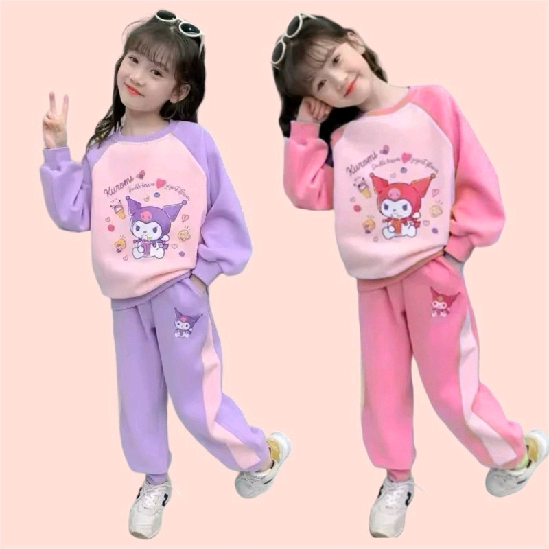 Setelan Baju Anak Perempuan Set Sweater Motif Kuromi Terbaru 1-5TAHUN