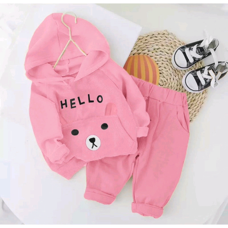 Hoodie Kupluk Anak Perempuan Lengan Panjang dan Lengan Pendek Setelan Baju Sweater Kupluk Anak