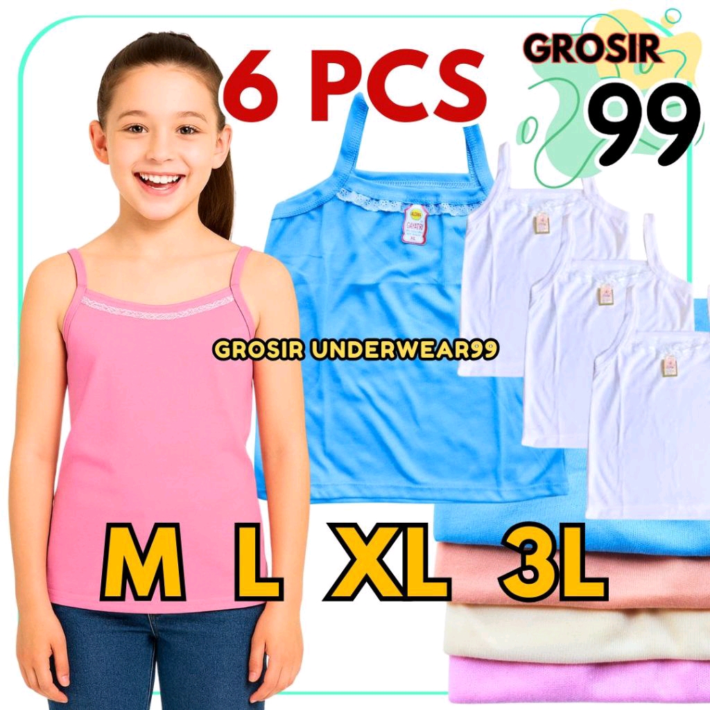 TERLARIS 6 Pcs Kaos Dalam Cewek - Singlet Anak Perempuan Renda dan Remaja